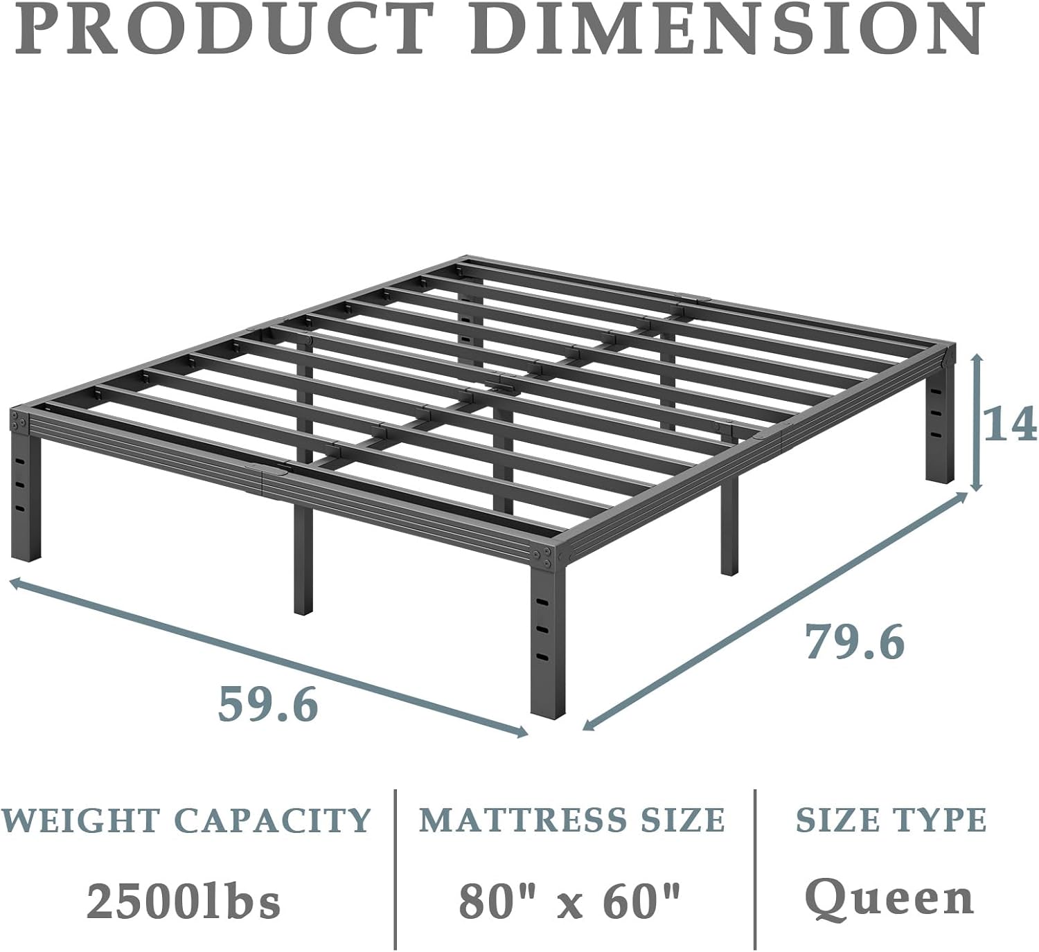 - HEAVY DUTY QUEEN BED FRAME: Reinforced steel support slats, 2500 LB of weight capacity to give the mattress stable support, help extend the life of the mattress, queen bed frame no box spring needed